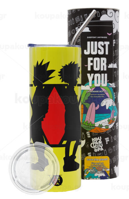 hunter x hunter, Neon Yellow Travel Tumbler, with metal straw (Stainless steel 304 Food grade, BPA free, 600ml)