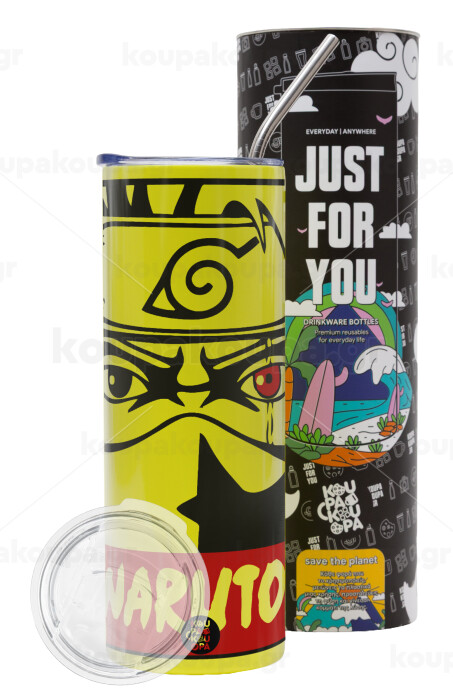 Naruto anime, Neon Yellow Travel Tumbler, with metal straw (Stainless steel 304 Food grade, BPA free, 600ml)