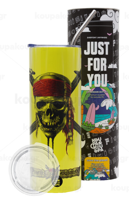Pirates of the Caribbean, Neon Yellow Travel Tumbler, with metal straw (Stainless steel 304 Food grade, BPA free, 600ml)