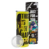 Wednesday, This is my happy face, Neon Yellow Travel Tumbler, with metal straw (Stainless steel 304 Food grade, BPA free, 600ml)