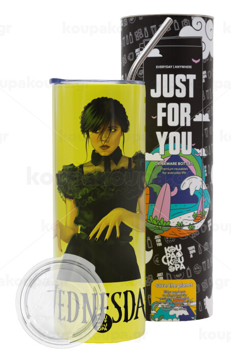 Wednesday Adams, dance with hands, Neon Yellow Travel Tumbler, with metal straw (Stainless steel 304 Food grade, BPA free, 600ml)