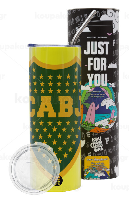 Club Atlético Boca Juniors, Neon Yellow Travel Tumbler, with metal straw (Stainless steel 304 Food grade, BPA free, 600ml)