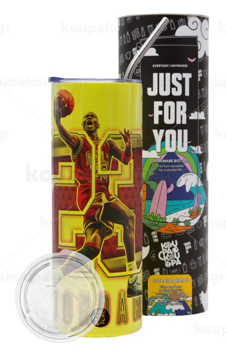 Jordan 23, Neon Yellow Travel Tumbler, with metal straw (Stainless steel 304 Food grade, BPA free, 600ml)