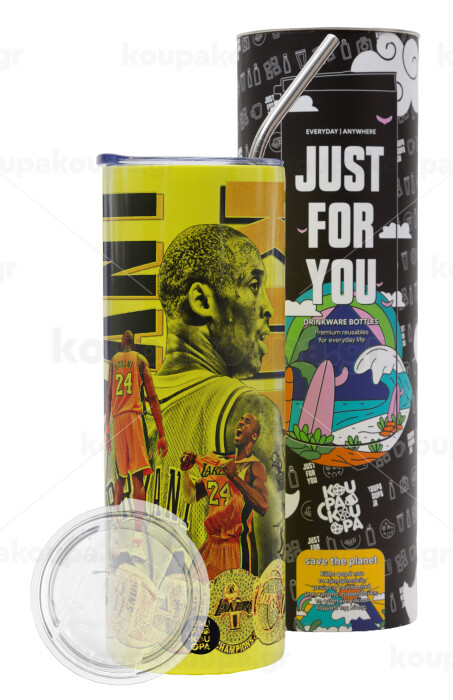 Kobe Bryant, Neon Yellow Travel Tumbler, with metal straw (Stainless steel 304 Food grade, BPA free, 600ml)