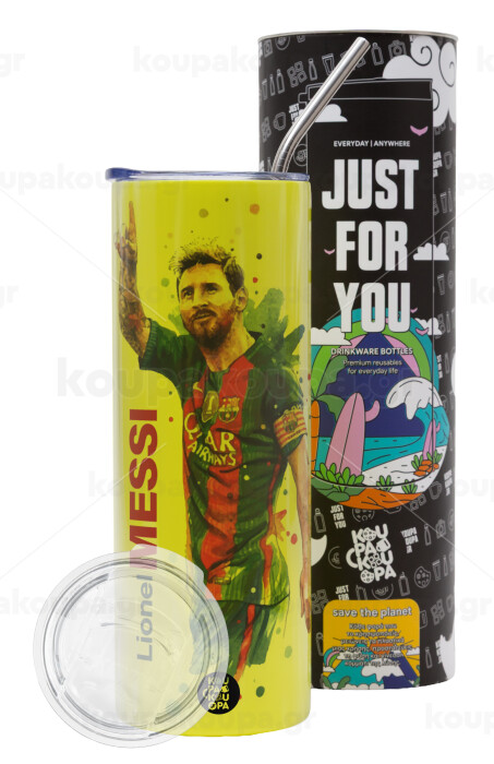 Lionel Messi, Neon Yellow Travel Tumbler, with metal straw (Stainless steel 304 Food grade, BPA free, 600ml)