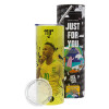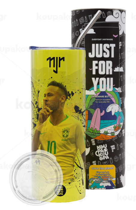 Neymar JR, Neon Yellow Travel Tumbler, with metal straw (Stainless steel 304 Food grade, BPA free, 600ml)