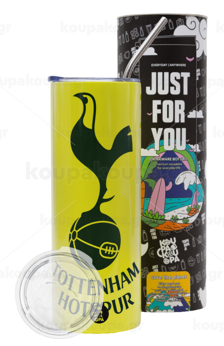 Tottenham Hotspur, Neon Yellow Travel Tumbler, with metal straw (Stainless steel 304 Food grade, BPA free, 600ml)