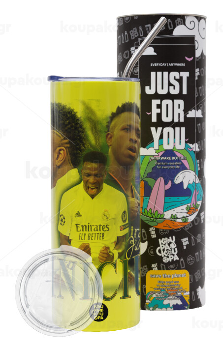 Vinicius Junior, Neon Yellow Travel Tumbler, with metal straw (Stainless steel 304 Food grade, BPA free, 600ml)