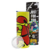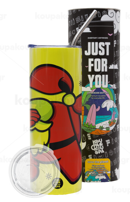 Among US Xmas, Neon Yellow Travel Tumbler, with metal straw (Stainless steel 304 Food grade, BPA free, 600ml)