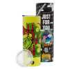 Grinch ho ho ho, Neon Yellow Travel Tumbler, with metal straw (Stainless steel 304 Food grade, BPA free, 600ml)