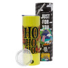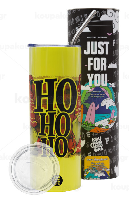 Ho ho ho, Neon Yellow Travel Tumbler, with metal straw (Stainless steel 304 Food grade, BPA free, 600ml)