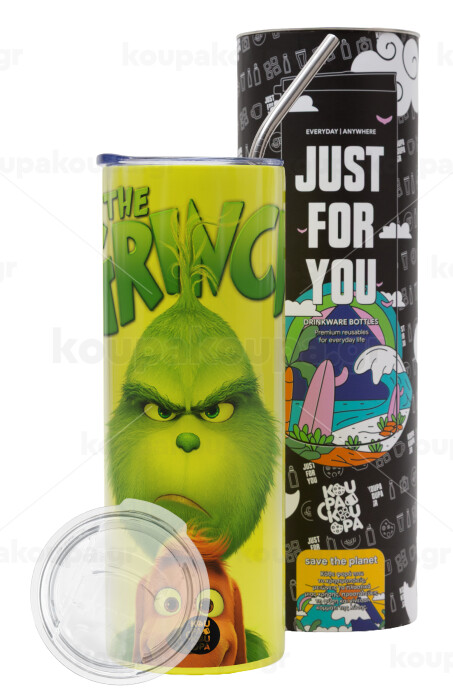 mr grinch, Neon Yellow Travel Tumbler, with metal straw (Stainless steel 304 Food grade, BPA free, 600ml)