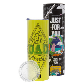 To the best DAD on earth, Neon Yellow Travel Tumbler, with metal straw (Stainless steel 304 Food grade, BPA free, 600ml)