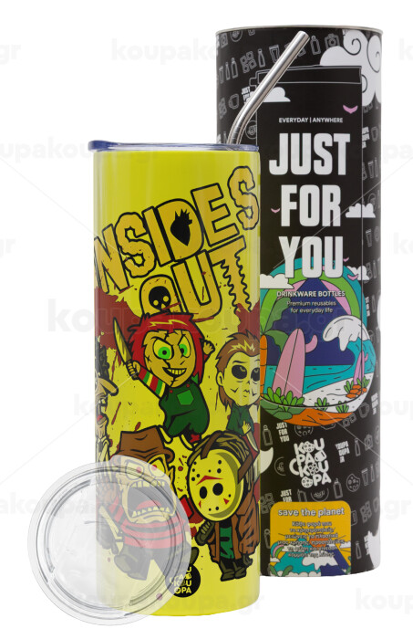 Halloween Inside out, Neon Yellow Travel Tumbler, with metal straw (Stainless steel 304 Food grade, BPA free, 600ml)