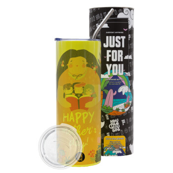Cute mother reading book, happy mothers day, Neon Yellow Travel Tumbler, with metal straw (Stainless steel 304 Food grade, BPA free, 600ml)