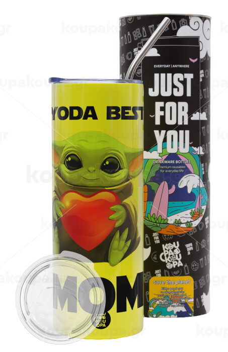 Yoda Best mom, Neon Yellow Travel Tumbler, with metal straw (Stainless steel 304 Food grade, BPA free, 600ml)