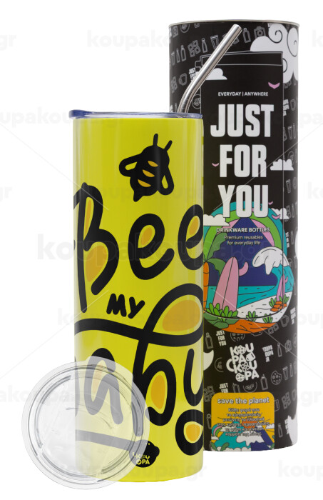 Bee my BABY!!!, Neon Yellow Travel Tumbler, with metal straw (Stainless steel 304 Food grade, BPA free, 600ml)