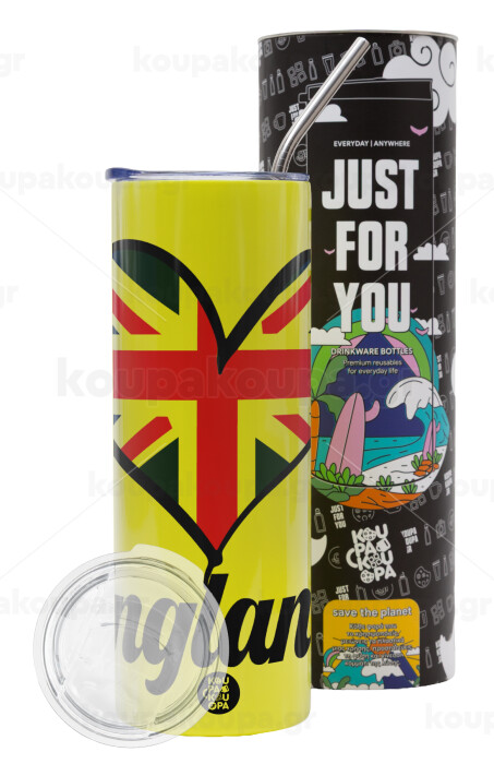 England flag, Neon Yellow Travel Tumbler, with metal straw (Stainless steel 304 Food grade, BPA free, 600ml)