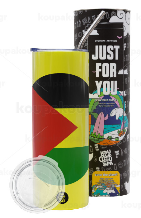 Palestine Flag, Neon Yellow Travel Tumbler, with metal straw (Stainless steel 304 Food grade, BPA free, 600ml)