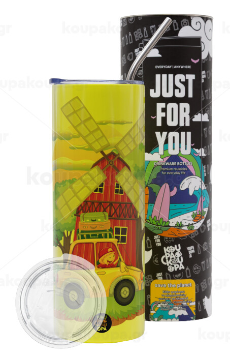 Toy car, Neon Yellow Travel Tumbler, with metal straw (Stainless steel 304 Food grade, BPA free, 600ml)