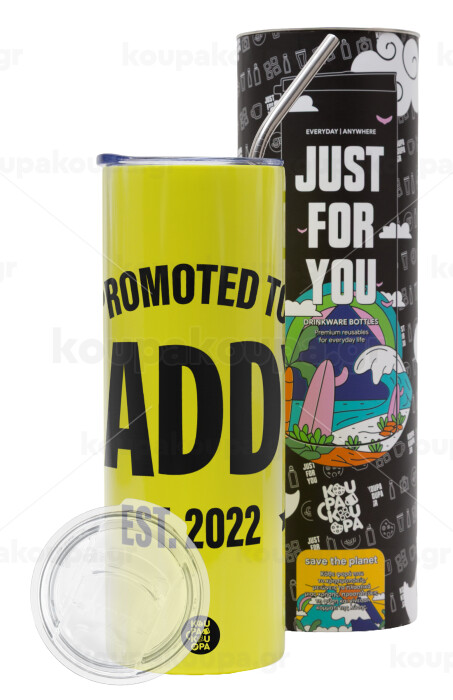 Promoted to Daddy, Neon Yellow Travel Tumbler, with metal straw (Stainless steel 304 Food grade, BPA free, 600ml)
