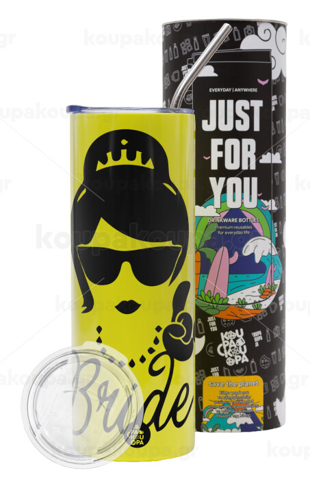 Bride hands, Neon Yellow Travel Tumbler, with metal straw (Stainless steel 304 Food grade, BPA free, 600ml)