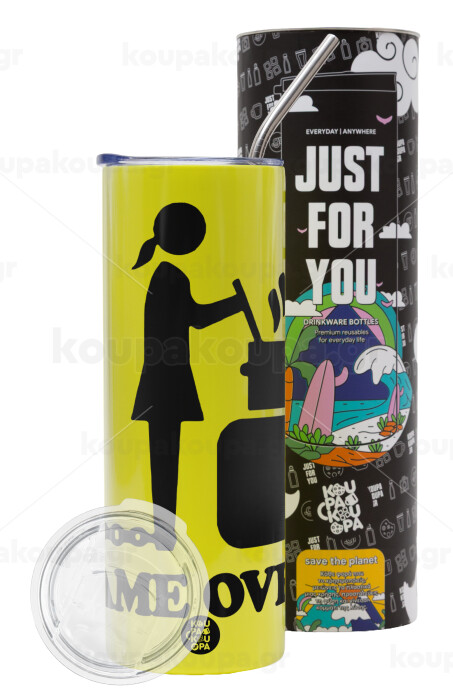 Woman Game Over, Neon Yellow Travel Tumbler, with metal straw (Stainless steel 304 Food grade, BPA free, 600ml)