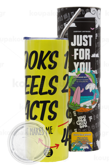Looks, feels, acts LIKE your AGE, Neon Yellow Travel Tumbler, with metal straw (Stainless steel 304 Food grade, BPA free, 600ml)