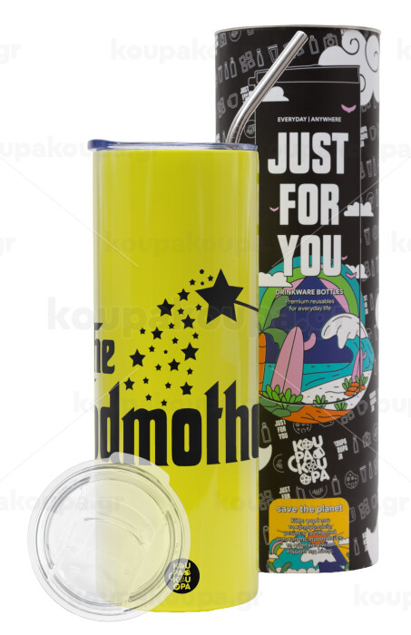 Fairy GodMother, Neon Yellow Travel Tumbler, with metal straw (Stainless steel 304 Food grade, BPA free, 600ml)