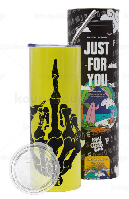 Middle finger, Neon Yellow Travel Tumbler, with metal straw (Stainless steel 304 Food grade, BPA free, 600ml)