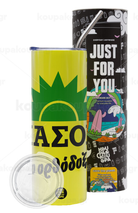 PASOK the orthodoxo, Neon Yellow Travel Tumbler, with metal straw (Stainless steel 304 Food grade, BPA free, 600ml)