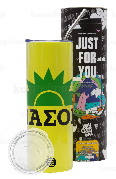 pasok, Neon Yellow Travel Tumbler, with metal straw (Stainless steel 304 Food grade, BPA free, 600ml)