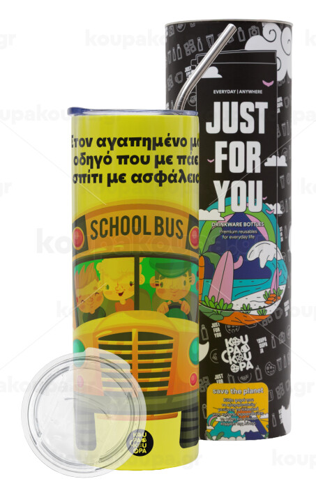 Στον αγαπημένο μου οδηγό που με πάει σπίτι με ασφάλεια!, Neon Yellow Travel Tumbler, with metal straw (Stainless steel 304 Food grade, BPA free, 600ml)