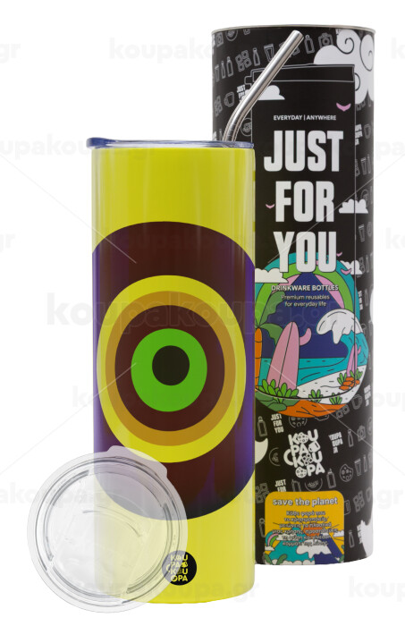 Το μάτι, Neon Yellow Travel Tumbler, with metal straw (Stainless steel 304 Food grade, BPA free, 600ml)