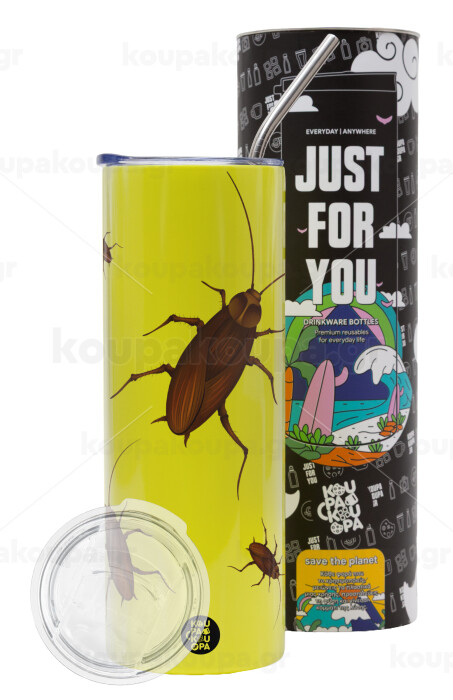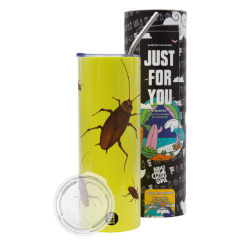 Blattodea, Neon Yellow Travel Tumbler, with metal straw (Stainless steel 304 Food grade, BPA free, 600ml)