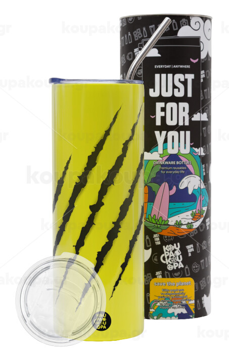 Claw scratch, Neon Yellow Travel Tumbler, with metal straw (Stainless steel 304 Food grade, BPA free, 600ml)