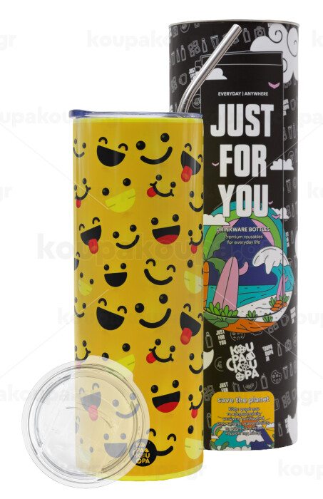 Smilies , Neon Yellow Travel Tumbler, with metal straw (Stainless steel 304 Food grade, BPA free, 600ml)