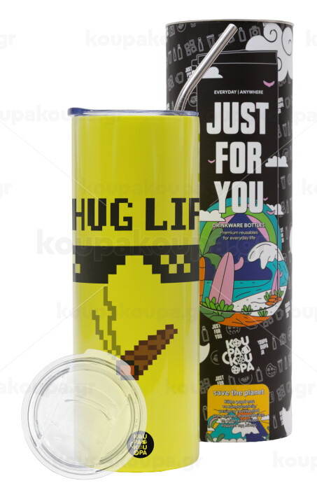 thug life, Neon Yellow Travel Tumbler, with metal straw (Stainless steel 304 Food grade, BPA free, 600ml)