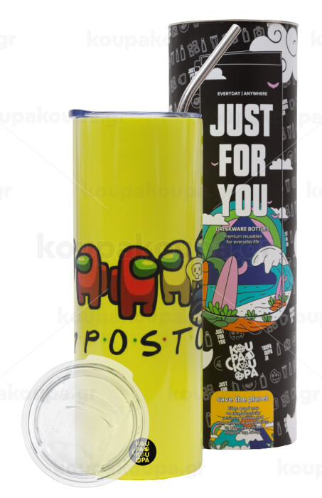 Among US impostor, Neon Yellow Travel Tumbler, with metal straw (Stainless steel 304 Food grade, BPA free, 600ml)