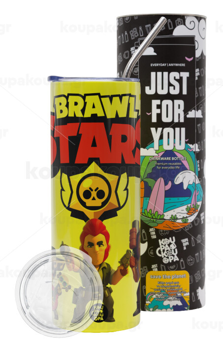 Brawl Stars Desert, Neon Yellow Travel Tumbler, with metal straw (Stainless steel 304 Food grade, BPA free, 600ml)