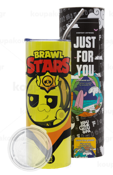 Brawl Stars Kit, Neon Yellow Travel Tumbler, with metal straw (Stainless steel 304 Food grade, BPA free, 600ml)
