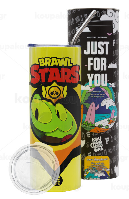 Brawl Stars Squeak, Neon Yellow Travel Tumbler, with metal straw (Stainless steel 304 Food grade, BPA free, 600ml)
