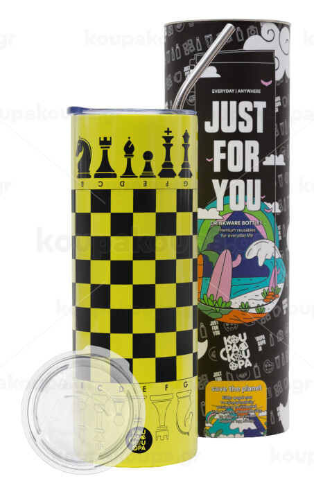 Chess, Neon Yellow Travel Tumbler, with metal straw (Stainless steel 304 Food grade, BPA free, 600ml)