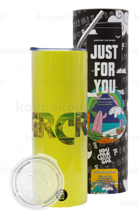 Farcry, Neon Yellow Travel Tumbler, with metal straw (Stainless steel 304 Food grade, BPA free, 600ml)