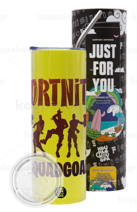 Fortnite #squadgoals, Neon Yellow Travel Tumbler, with metal straw (Stainless steel 304 Food grade, BPA free, 600ml)