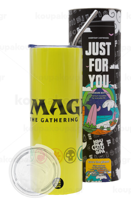 Magic the Gathering, Neon Yellow Travel Tumbler, with metal straw (Stainless steel 304 Food grade, BPA free, 600ml)
