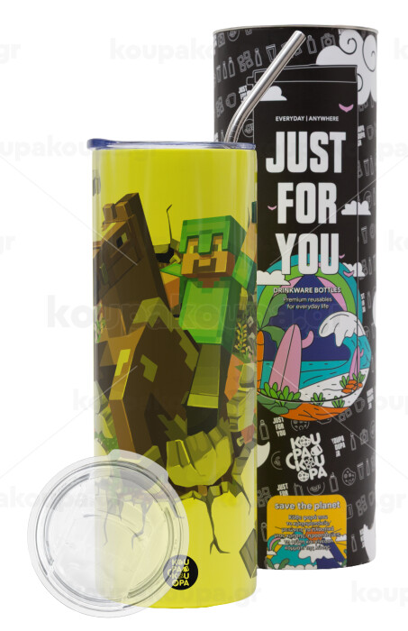 Minecraft brick, Neon Yellow Travel Tumbler, with metal straw (Stainless steel 304 Food grade, BPA free, 600ml)