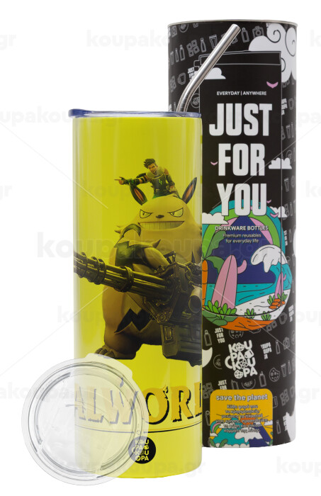Palworld, Neon Yellow Travel Tumbler, with metal straw (Stainless steel 304 Food grade, BPA free, 600ml)