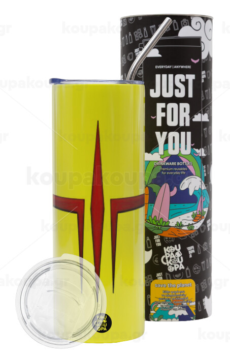 Quake 3 arena, Neon Yellow Travel Tumbler, with metal straw (Stainless steel 304 Food grade, BPA free, 600ml)