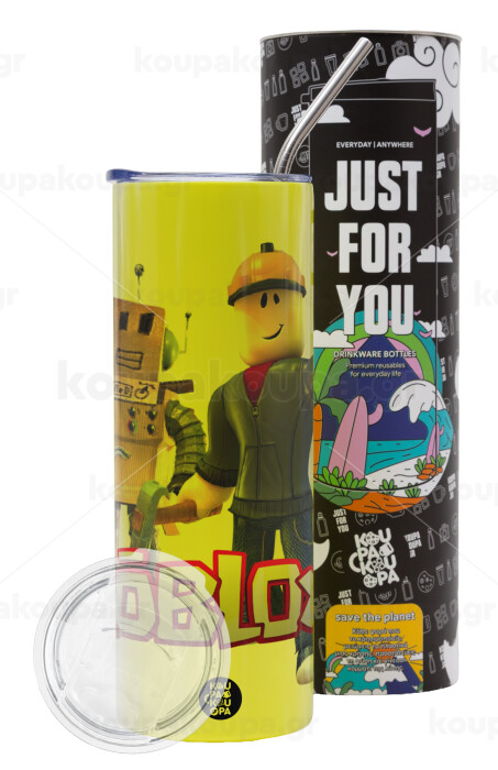 Roblox, Neon Yellow Travel Tumbler, with metal straw (Stainless steel 304 Food grade, BPA free, 600ml)